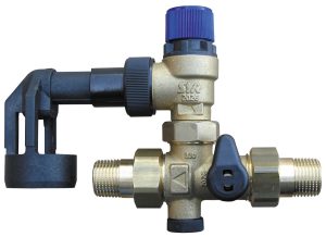 Zespoły zabezpieczające SYROBLOC typu 330 DN20 w wersji przelotowej służą do zabezpieczania przed przekroczeniem ciśnienia w zamkniętych podgrzewaczach wody. Zwarta forma zespołu SYROBLOC 330 umożliwia bardzo racjonalny i szybki montaż. SYROBLOC 330 zabezpiecza podgrzewacz wody przed przekroczeniem dopuszczalnego ciśnienia i przepływem zwrotnym wody.