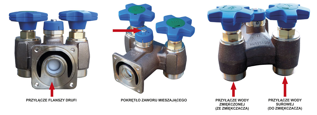 Zawór obejściowy SaoCal Bypass (Nussbaum) służy do szybkiego i niezawodnego podłączenia do instalacji wody użytkowej urządzeń typu zmiękczacz SaoCal, odżelaziacz SaoCal Fe, itp. Zawór spełnia wszystkie funkcje klasycznego obejścia. Kompaktowe wykonanie gwarantuje łatwość obsługi przy niewielkiej ilości miejsca w instalacji. Wykonanie Nussbaum gwarantuje niezawodność, długoletnie i precyzyjne działanie oraz nowoczesne wzornictwo. Odpowiednie położenie zaworu obejściowego uzyskuje się dzięki właściwemu ustawieniu pokręteł. Podmieszanie wody uzdatnionej z surową za pomocą pokrętła ze skalą.