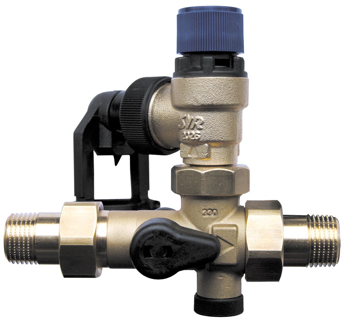 SYROBLOC typ 330 składa się z zaworu odcinającego, zaworu zwrotnego z króćcem kontrolnym, króćca przyłączenia manometru, membranowego zaworu bezpieczeństwa oraz kosz wyrzutowy z przerwą powietrzną uniemożliwiającą wsteczne zassanie wody z kanalizacji. Montaż przy pomocy śrubunków. Zawór bezpieczeństwa jest łatwy do wymiany, wyposażony w odporne na uszkodzenia siedzisko ze stali nierdzewnej oraz śrubunek umożliwiający obrót o 360°, dzięki czemu może być dopasowany do różnych warunków zabudowy.